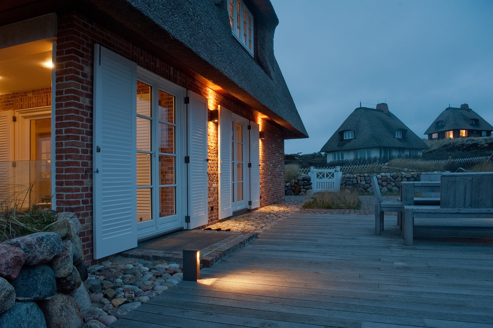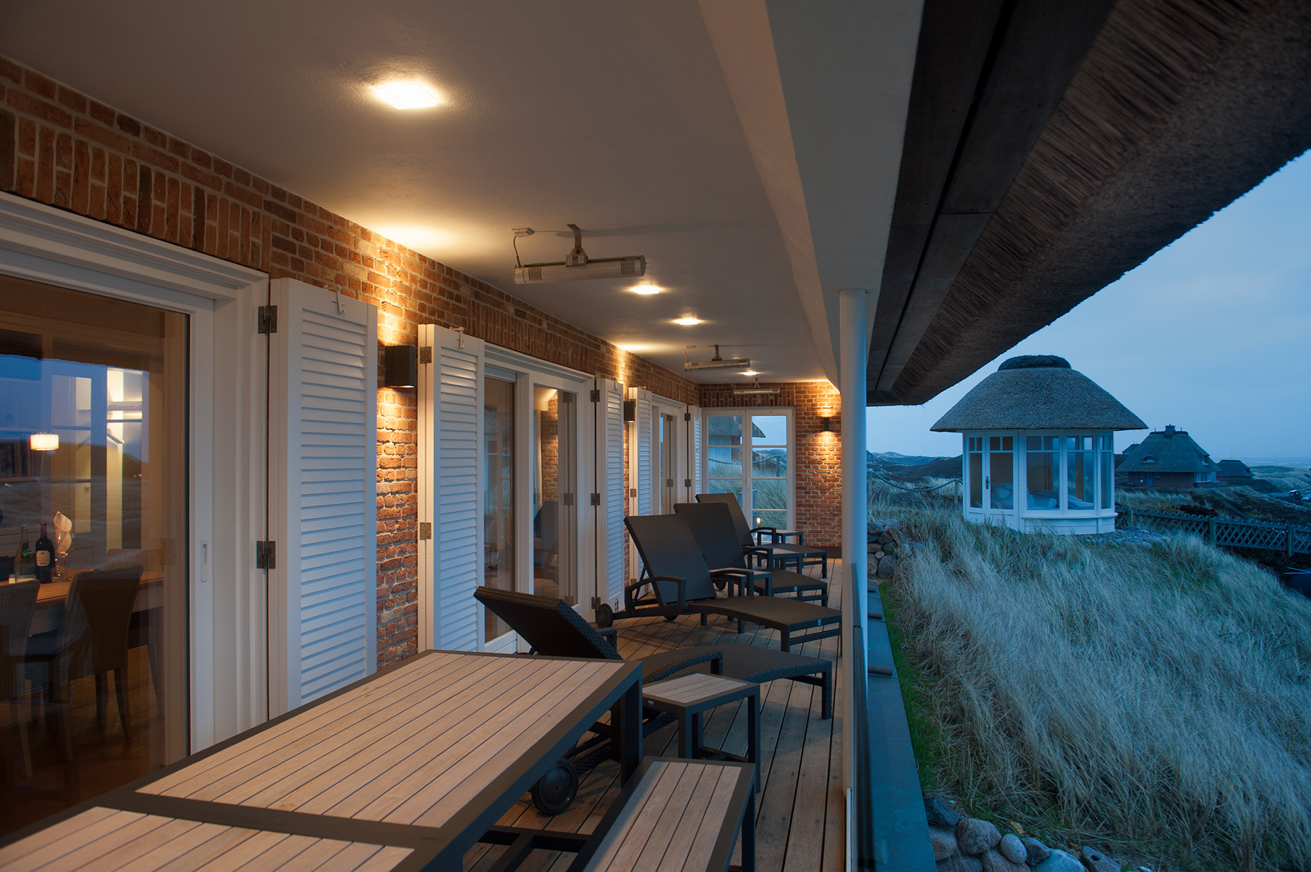 Exklusives Licht-, Farb- und Interieurkonzept mit Outdoormöbel